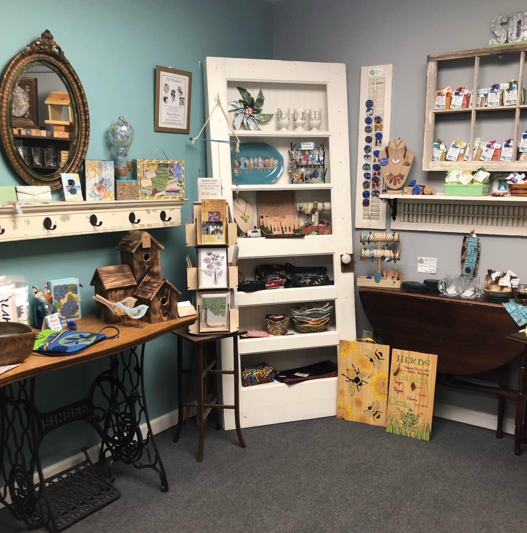 The Stitch 'n Bead offers a charming collection of handcrafted gifts and home decor items in Louisburg, NC. Find unique purses, wallets, tote bags, bucket hats, aprons, gemstone bead jewelry, soy wax candles, handmade soap and spa items, etched glassware, original art, garden and home decor, metal art sculptures, and more, all designed and created with care. We also welcome custom orders and offer custom embroidery. Shipping is available on some items.Our hours vary seasonally. Our current hours are Tuesday & Wednesday, 11 AM - 4 PM, Thursday 12 - 6 PM, Friday & Saturday 11 AM - 4 PM.To verify most current hours on a specific day, please refer to our Facebook page. We also offer private shopping opportunities during closed hours, call us to shop at your convenience.For the most up to date photos of our newly added items, please follow us on Facebook or Instagram.